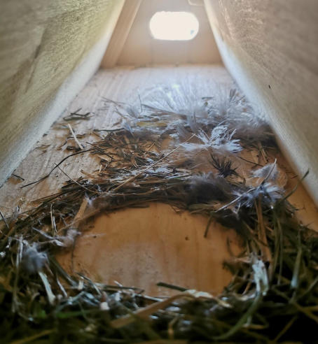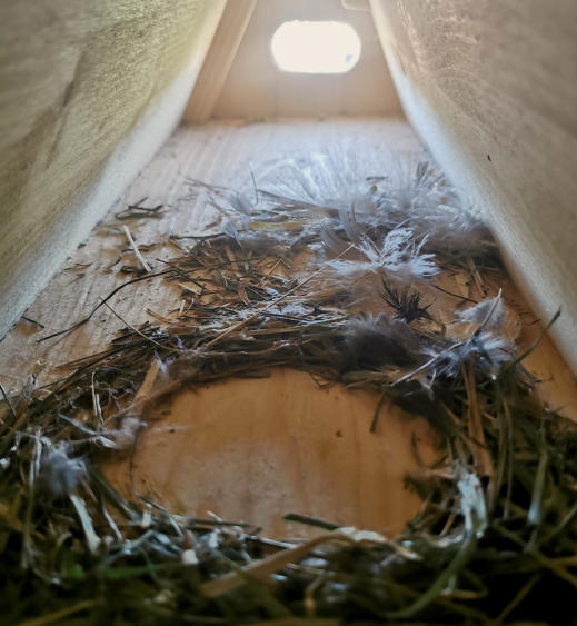 Kasten 12 sitzt der erste Spyr im Nest. Alle andern
