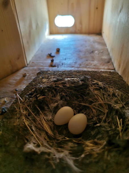 12. Mai: In 5 Kästen liegt jetzt je ein Ei im Nest.
