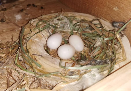 Nachfolgebrut mit wiederum drei Eiern. Die daraus